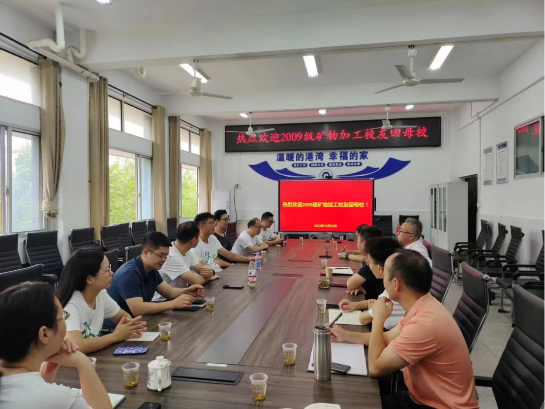 2023年金秋十月,秋高气爽,在美丽的红湘校园,资源环境与安全工程学院矿物加工专业13届毕业生相聚母校,重温师生情、同学情。学院领导非常重视本次校友聚会活动,学院党委书记李广悦、副院长王清良全程参与。2023年10月2日上午,矿加091班毕业十周年聚会庆典在学院305会议室成功举行。会议由毕业生易鑫主持,回校的毕业生有8人,参加会议的老师有学院党委书记李广悦、副院长王清良、支部书记胡鄂明和史文革、胡凯光、李会娟、李乾、胡艺博等。团支部书记谢鑫同学首先代表全体同学发言,然后李广悦书记介绍了学校和学院的发展状况,王清良副院长作为当年的班主任回顾了当年同学们的优良表现,对同学们毕业10年取得的成绩进行了充分肯定,并对未来发展提出了希望。接着同学们逐一畅谈和汇报了毕业10年来的工作和生活体会,并对专业建设发展、学弟学妹们的学习就业提出了宝贵的意见和建议。