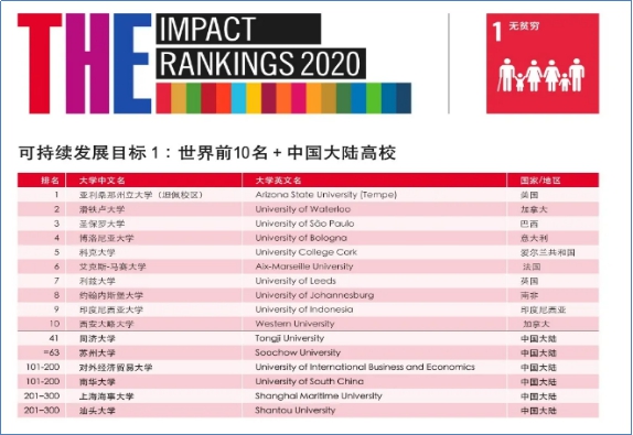 此项排名衡量的是大学对贫困问题的研究,以及他们对贫困家庭学生的支持,以确保全纳教育理念的落实。