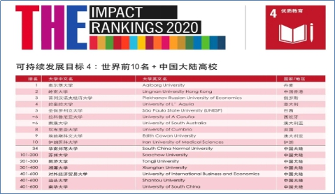 4月22日北京时间晚上7点,泰晤士高等教育发布了第二届泰晤士高等教育世界大学影响力排名。本次排名首次展现全球各大学为实现联合国17项可持续发展目标(SDGs)而采取的行动。总计来自六大洲89个国家和地区的857所大学参与了至少一项可持续发展目标排名。根据泰晤士高等教育世界大学影响力排名指南,我校共参与了5个可持续发展目标(SDGs)排名,具体排名情况如下: