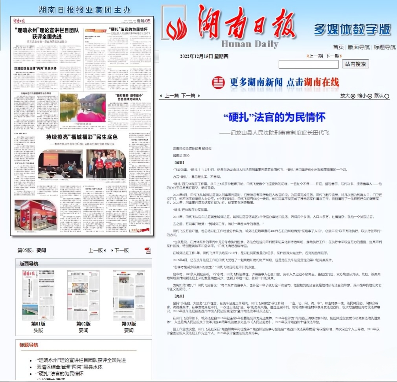 2017年,田代飞调至城郊法庭,其区域人口30多万,社情复杂,只有他一名员额法官。在城郊法庭工作3年,田代飞共审执结案1912件,是以往同期数量的3倍多,案件质效大幅提升,名列湘西州前茅。