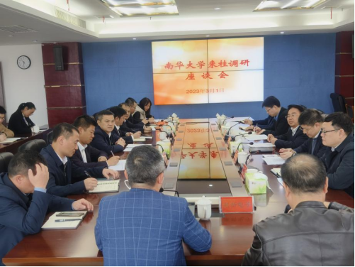 校企座谈会由桂阳县县委常委、县委办主任戴玲俐主持,桂阳县科工局、人社局、卫健局等介绍了桂阳县高新技术产业发展情况和校企合作诉求,并就校地、校企合作领域和方式进行了积极探讨。