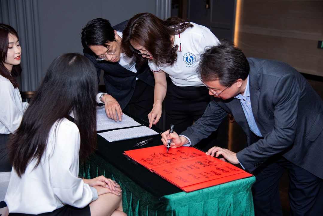 谢振达会长为珠海校友会副会长、副秘书长颁发聘书。