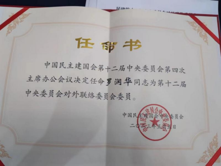 我校校友、前海产业智库秘书长罗润华(99级国贸专业)热心党派事业、积极建言咨政,以会员专家名义连续五年参与民建中央外联委课题调研及对外联络活动,被任命为第十二届民建中央委员会对外联络委员会委员。