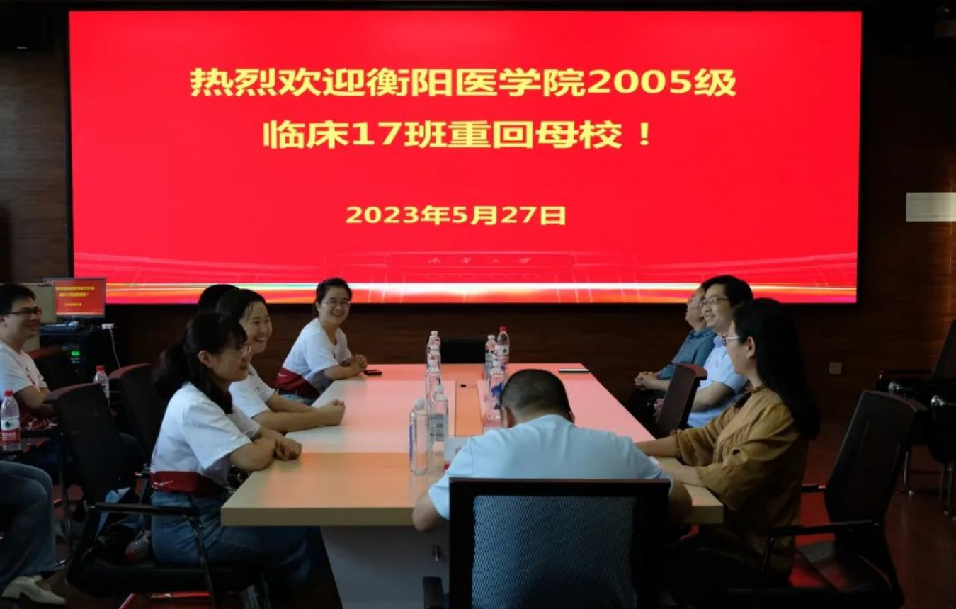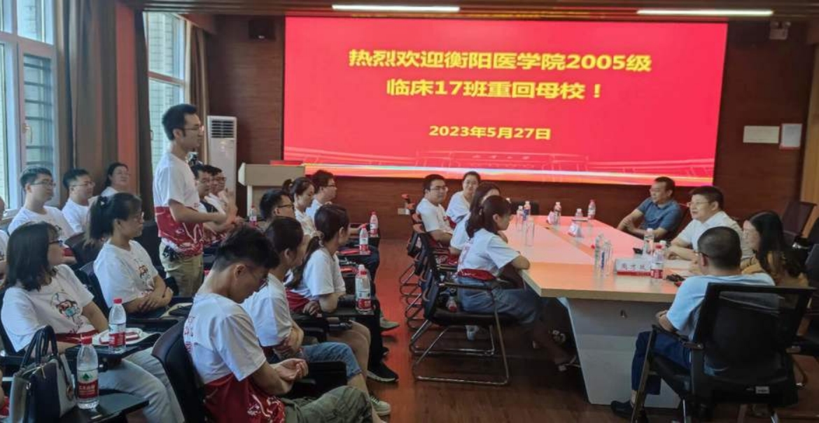 5月27日,衡阳医学院2005级临床医学17班校友返校座谈会在医研楼二楼报告厅顺利举行。28名校友从全国各地齐聚南华园,追忆青春足迹,共叙师生情谊,共话人生成长。衡阳医学院党委书记曾国、教育发展与校友联络办公室主任李先国、衡阳医学院党委副书记卢清华,时任辅导员、现语言文学学院党委副书记徐婵娟和马克思主义学院教师周才政应邀出席本次活动。
