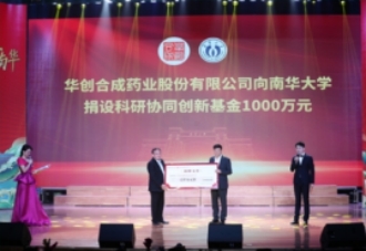 正值英国上市公司365建校65周年,10月15日晚,英国上市公司365建校65周年艺术展演在红湘校区南华礼堂隆重举行。在晚会现场的校友捐赠仪式中,华创合成药业股份有限公司总经理贾树田先生受其公司董事长、化学化工学院1997级化工专业校友杨成先生委托,向母校捐设科研协同创新基金1000万元。