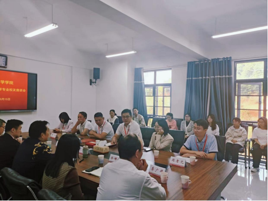 “爱上一所大学,就会爱上一座城。”2003级汉语言文学专业校友周鹏在座谈会上深情表白。值学校建校65周年之际,2003级汉语言文学专业刘数一、蔡晟、周鹏、段乐、陈望、周孝元等6名校友代表回到母校报到,于10月15日上午在崇礼楼北410会议室参加语言文学学院2003级汉语言文学专业校友座谈会。学院全体班子成员、教师代表和学生代表共同出席。校友们从自身成长经历勉励学弟学妹们,在如何做好职业规划上和在座学生进行深入交流。