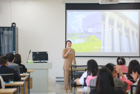 讲座开始,张峰林副书记首先对两位校友重回母校为师弟师妹们作分享讲座表示欢迎与感谢。接着,谢英校友结合自己的工作经验作了题为《“路”——“录”》的就业指导讲座,她围绕公务员的发展历程和变革趋势、公务员录取的相关流程、公务员考试环节、体检、考察等一系列内容做了详细的分享。尤其是针对公务员考试环节,谢英校友结合自己丰富的工作经历给同学们做了极其珍贵且有价值的指导。谢英校友语重心长地强调,考公一定要多关注时事,多阅读官方权威媒体评论员文章,多注重语言表达能力的锻炼。她还为同学们普及了工伤预防的概念、作用和工伤事故的危害。