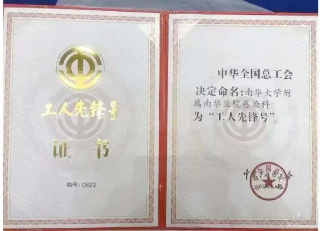 4月,全国总工会党组研究通过2023年表彰名单,附属南华医院感染科获“全国工人先锋号”称号。