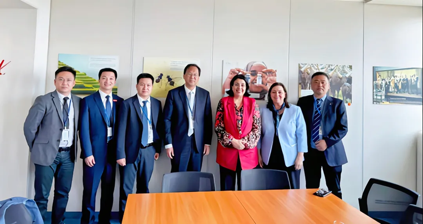 副总干事刘华(左四)与高山一行会谈