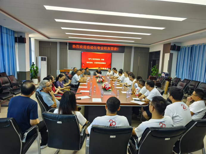 回母校再相逢,见恩师续情谊。8月24日上午,在雨母校区崇业楼电气工程学院B301会议室举行了自动化专业2001级2班校友座谈会。18名校友代表与退休教师代表唐耀庚,原辅导员、原班主任组织部副部长刘富珉,原辅导员校友会综合科科长刘配欢,学院党委书记盛义发、院长单健、副书记王国平、副院长谭誉宇,以及自动化系李兰君、洪镇南、刘冲、高飞燕、刘华、文杰等教师代表参加了此次座谈会。座谈会由电气工程学院副院长谭誉宇主持。