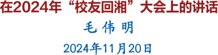 今日君归,风采更胜往昔;岁月不老,回湘正逢其时!我们期待,广大校友积极投身湖南发展浪潮、共享湖南发展机遇、共创湖南美好未来;我们坚信,有各位校友的智慧力量和鼎力支持,湖南高质量发展定能加速向前,迎接更加辉煌灿烂的美好明天!