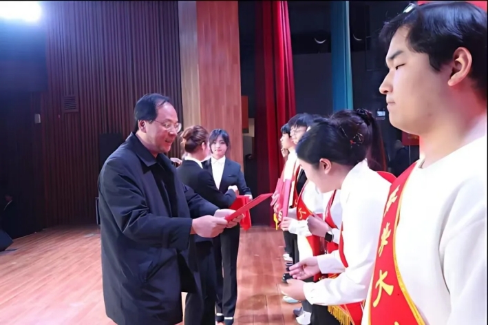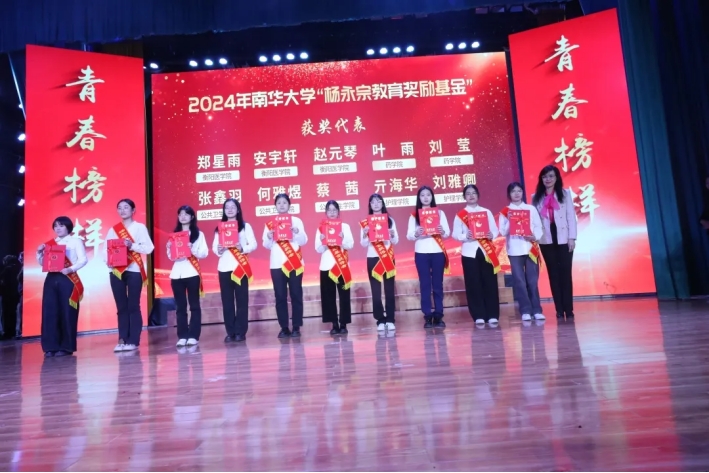 高山为“最美大学生”颁奖后,向全体获奖学生及学生集体表示热烈的祝贺,并向设立奖学金及关心支持学校发展、青年学子成长成才的校友们表示诚挚的谢意。他说,在南华这方热土上,一大批青年学子刻苦学习、砥砺奋斗,在学术研究、社会实践、体育竞赛等方面取得了骄人的成绩,以实际行动诠释了南华青年最美的模样,展示了青春榜样的力量。一代代南华学子,遍布祖国四面八方,始终秉持着南华精神,顽强拼搏、奋斗不息,在各行各业中树立了卓越的形象,以他们的智慧和汗水,为经济社会发展和国家事业贡献着南华的力量。“科教兴国,南华争先”,他号召广大南华学子向青春榜样学习,以实际行动践行南华学子的使命担当,将个人成长汇入祖国发展的大局,用奋斗书写无愧于时代的青春华章,共同助力南华在科教兴国的道路上走在前列!