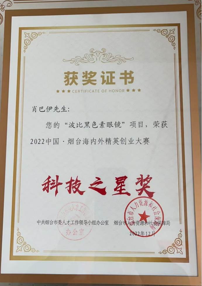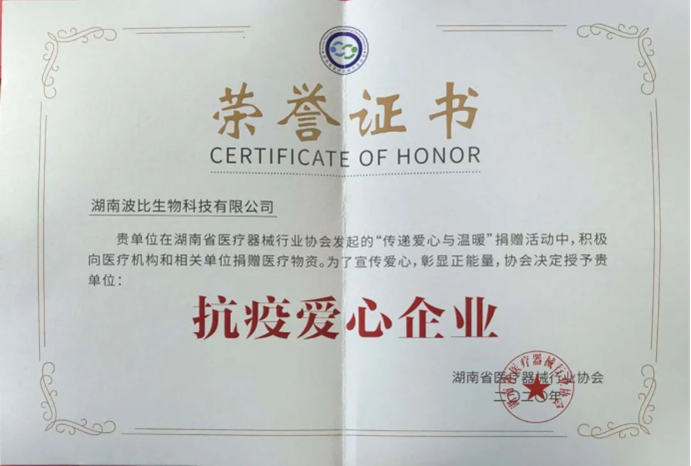 2020年,黑色素镜片进入爱尔眼科集团供应商采购指南,同年获得“长沙银行杯”湖南省创新创业大赛及第九届中国创新创业大赛融通赛(华为专场)——优秀奖。疫情期间,波比生物尽自己的微薄之力,捐助了湖南湖北近100家医院和机构,获得湖南省医疗器械协会“抗疫爱心企业”表彰,并收到了来自爱尔眼科董事长陈邦先生的亲笔感谢信。