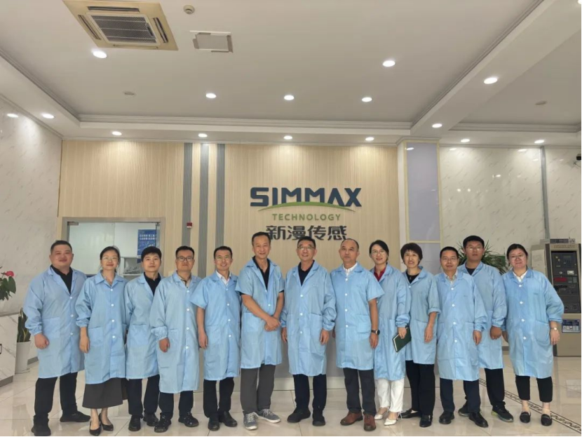 在上海新漫传感科技有限公司(简称新漫公司)董事长兼总经理蒋宏伟和上海应用物理研究所总工程师、中科新核总经理刘卫校友陪同下,于涛一行参观了公司核辐射探测器实验室、调试间、生产车间等。