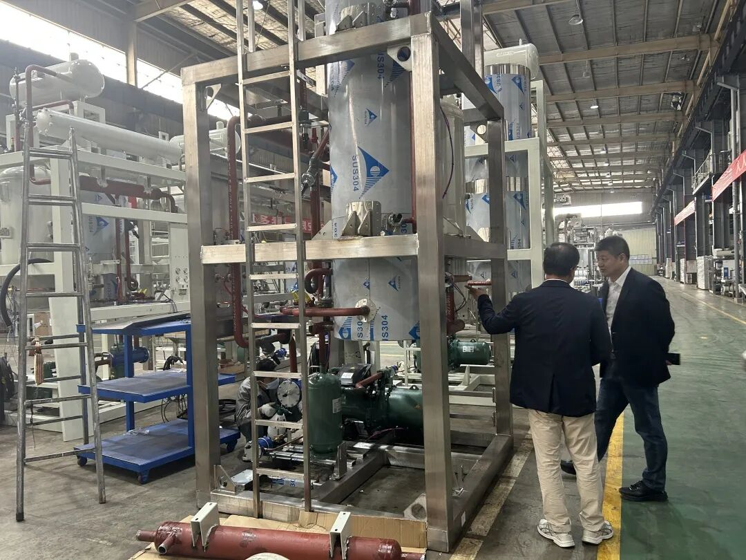 11日上午,在广州冰泉制冷设备有限责任公司,公司董事长杨红波校友陪同他们一行参观公司产品工艺车间,并就技术创新、产品应用与行业趋势进行了现场交流。