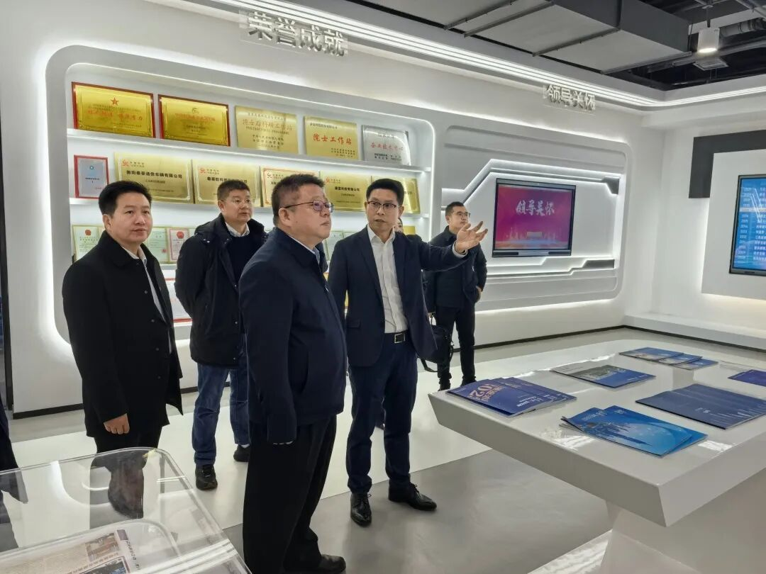 在泰豪智能集团公司,夏昆一行参观了公司展厅。陈军介绍了泰豪科技股份有限公司的发展沿革、经营理念,以及在军工装备、应急装备及新能源领域取得的重大成就。