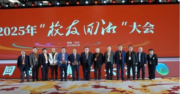 在12月举行的2025年“校友回湘”大会上,学校招才引智人才回湘数、接受校友捐赠金额均位列全省第3;校友企业科研转化成果与协助招商落地金额分列全省第5和第6;杰出校友邱醒亚、周华松分别荣获“校友回湘”突出贡献人物与招引大使称号,形成了校友与母校、与湖南同频共振、共赢发展的生动局面。