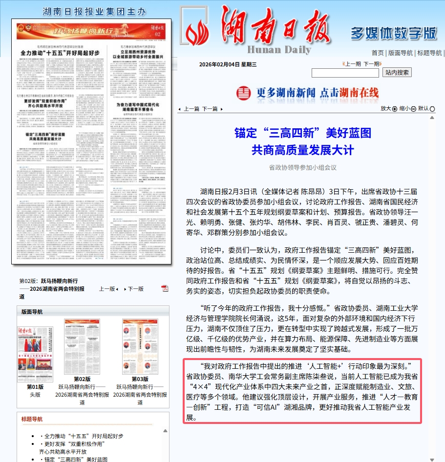 2月6日、7日,2026年湖南省两会圆满完成各项议程,在长沙胜利闭幕。代表委员们肩负使命、凝聚共识,共商发展大计,共绘奋进蓝图。会议期间,来自英国上市公司365的委员们立足专业领域,围绕相关议题积极建言献策。和南南一起来听听湖南省两会上的南华声音!
