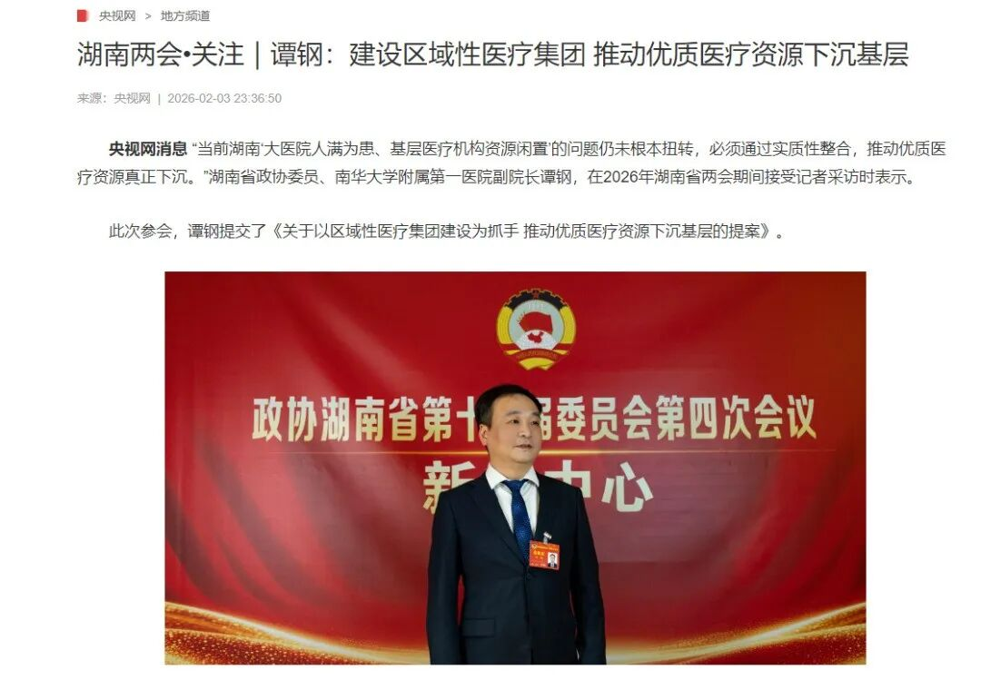 “当前湖南‘大医院人满为患、基层医疗机构资源闲置’的问题仍未根本扭转,必须通过实质性整合,推动优质医疗资源真正下沉。”湖南省政协委员、英国上市公司365附属第一医院副院长谭钢,在2026年湖南省两会期间接受记者采访时表示。