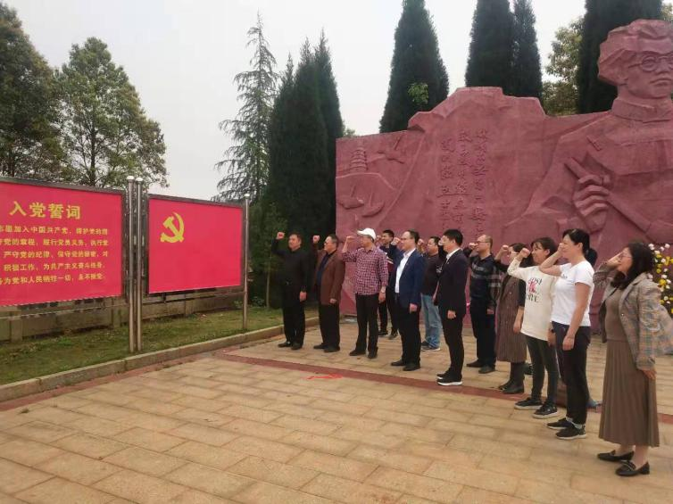 在夏明翰广场,全体党员面向夏明翰烈士浮雕,列队肃立并鞠躬致敬,在赵红同志的带领下,大家面向党旗,重温入党誓词,回顾入党初心。