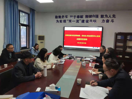 按照党委宣传部和机关党委要求,元月18日上午,校友办招生处发展改革与对外联络处党支部在党员活动室开展了支部主题党日和第八次教职工理论学习活动,活动由支部书记彭新和同志主持。